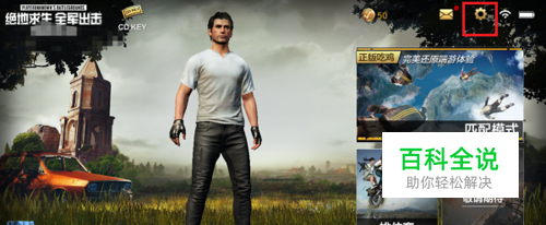 第一步在我们的手机里面打开绝地求生全军出击,进去之后,点击右上方的游戏设置图标,如下图所示: