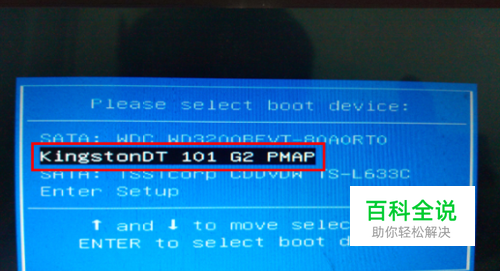 进入到启动项界面后,选择启动u盘(USB HDD/USB/u盘名)项,按回车键确认选择,如下图所示: