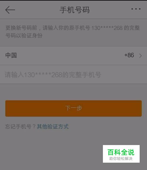 输入完整的原手机号,然后点击“下一步”
