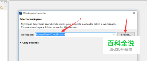 第二步: 修改myeclipse的工作空间 查看到项目的存储位置时,同时也可以看到旁边的 Browse... 按钮选项,选择自己需要存储项目的路径,确定后可以发现自己的 myeclipse 工作空间存储位置发现了改变。