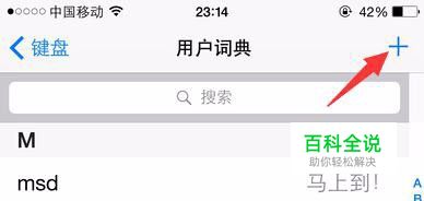 在iPhone上依次打开设置→通用→键盘→用户词典,点击右上角的+