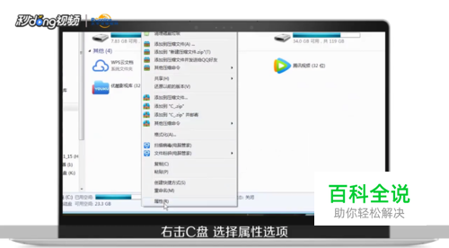 首先打开计算机,右击C盘,选择“属性”选项。我们可以看到已用空间和可用空间。