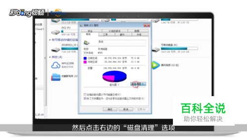 然后点击右边的“磁盘清理”选项,计算机就会帮你计算可以删除的垃圾。