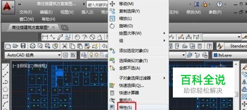 如果只想改变部分文字大小,点击这个文字(单行文字或者是多行文字),激活文字编辑,出现蓝色的点;然后点击鼠标右键,弹出快捷方式,点击“特性”