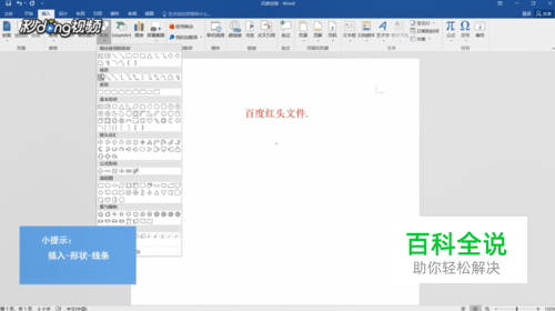 首先打开文件,点击“插入”,选择“形状”,点击“线条”图标。