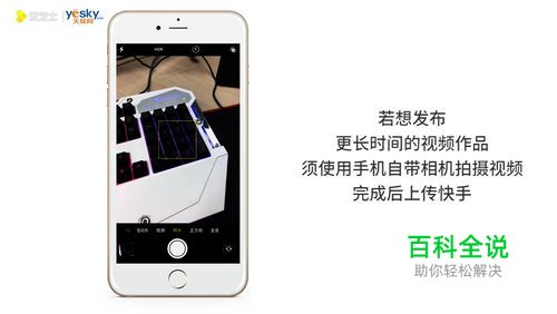 若想发布更长时间的视频作品,需使用手机自带相机拍摄视频,完成后上传快手。