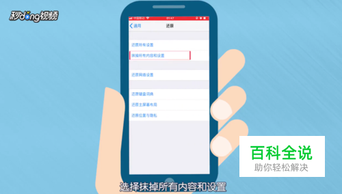 选择“抹掉所有内容和设置”,删除手机内所有设置和应用。