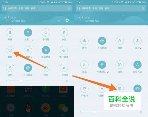 方法一:下拉通知栏截屏 MIUI简单易用,截图也非常简单,直接在红米5下拉通知栏,找到截屏的按钮,点击即可快速截屏,如下图所示!