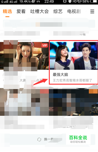 第二步 这时候,在主页上看到一些视频,比如,我们可以点开感兴趣的“最强大脑”,如图所示。