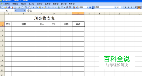 首先双击EXCEL2003打开,在第2行分别录入序号、摘要、收入、支出、余额、备注。