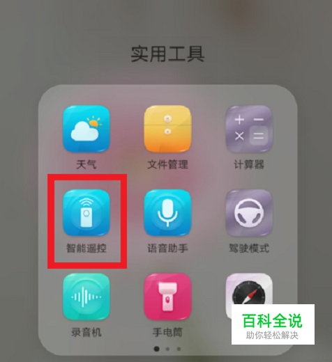 在各自手机主屏上找到“实用工具”这一框标志,并打开在其中再点开“智能遥控”的标样。