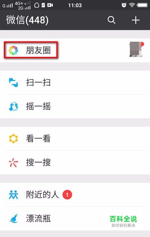 点击“发现”后,界面会弹出很多选项,点击“朋友圈”。