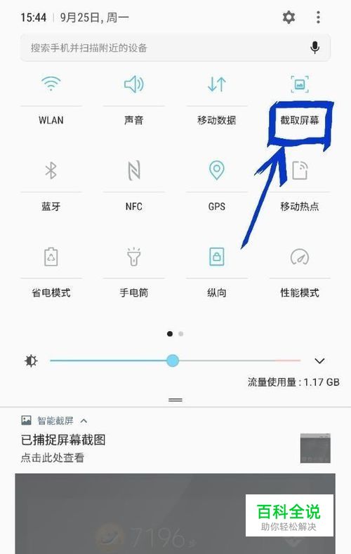 状态栏下拉到底,找到截取屏幕快捷按钮,点击截取屏幕快捷按钮下方的文字,如下图所示