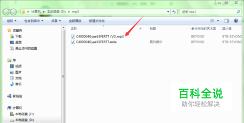下载完成后会弹出一个新的对话框,点击其中的“文件夹”按钮,将会打开文件所在的窗口,但文件的扩展名为.m4a,并不是我们想要的mp3文件,所以还要进行转换操作。
