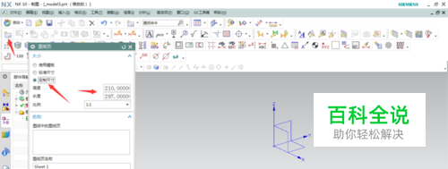 随意创建一个模型,点击左侧资源条下拉箭头,可以看见我们创建的模板,点击需要的图框,则自动进入制图模块,生成图框,如图所示可进行视图的放置。双击注释文字可进行修改。