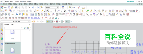 在标题栏添加相应的文字项,图框内编辑好常用的技术要求和粗糙度要求。具体如图所示,还可以根据自己企业的特点添加企业的标志等。