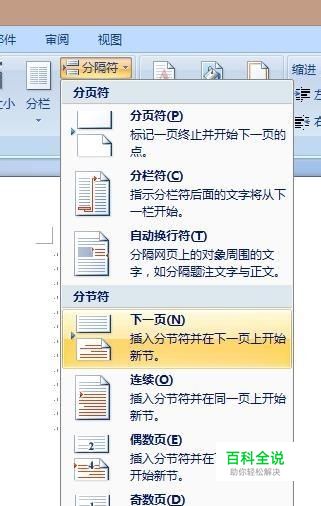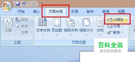 word2007的分隔符不在插入里,而在“页面布局”下面的“分隔符里”。