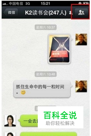 然后进入你要踢人的群组,点击右上角的两个小人的图标。