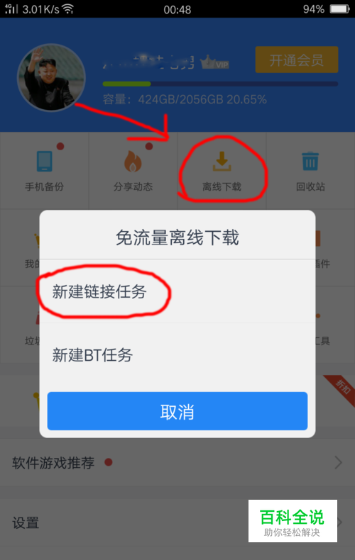 在选项 "更多" 的这个页面中,点击“离线下载”这个功能,然后选择“新建链接任务”