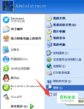 然后在点击开始这个选项的, 在开始选项上方弹出一个小面板,我们这里找到“运行”选项并点击它。