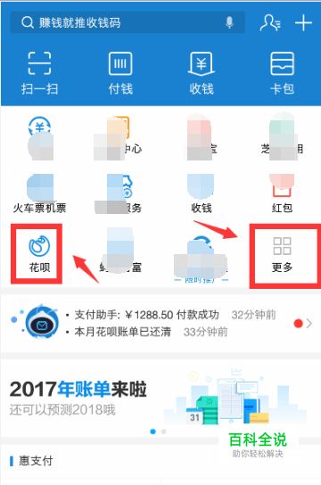 打开支付宝首页,点击'更多"里面找到花呗,如图 ,如果你和小编一样直接把花呗添加在首页上直接点击“花呗”。