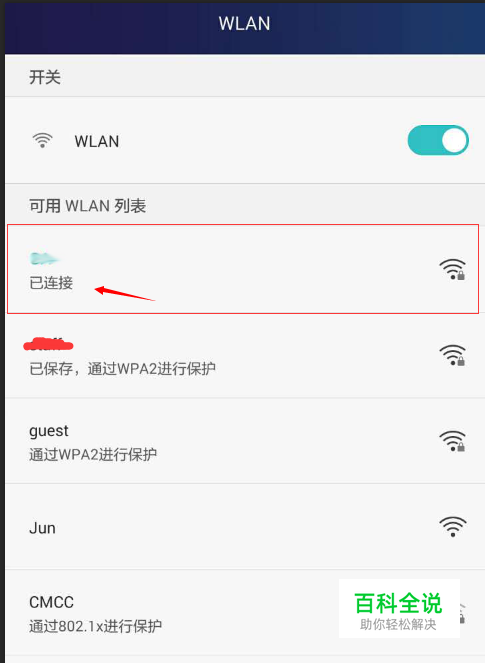 从可用WLAN列表中看到,第一个就是目前手机已连接的wifi