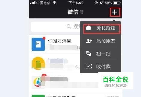 首先针对的是已经加入的微信群聊,在我们清空微信聊天列表后就找到到群聊了,这个时候找群聊就很简单了,我们点击微信主页右上角的加号,选择发起群聊。