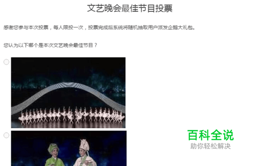 3、活动投票 每次晚会的重头戏是优秀节目的获奖名次,奖项选评自然是大家重视的一件事。但是如果直接颁布名单,总有暗箱操作的嫌疑。使用单选题制作在线投票,不仅公开透明、统计投票更方便,而且还能增加现场互动,让晚会变得更有趣。