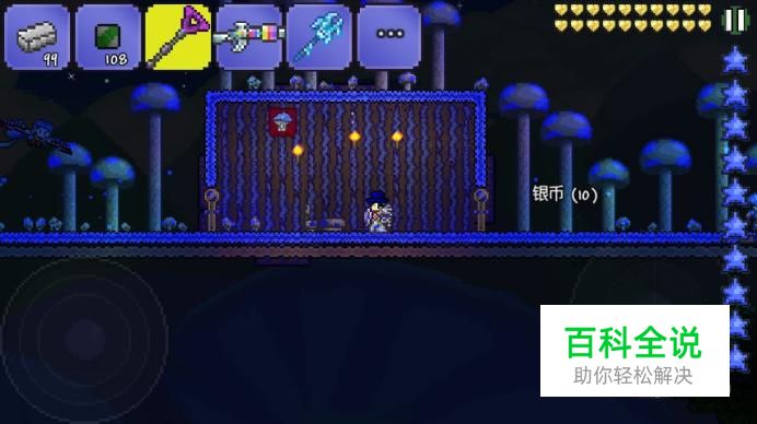 完成以上步骤,泰拉瑞亚蘑菇人的房子就基本建造完成了。这时候我们还可以用夜光蘑菇孢子和淤泥块一起使用,建造一个夜光环境,这时候,房子就大功告成了。