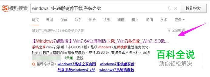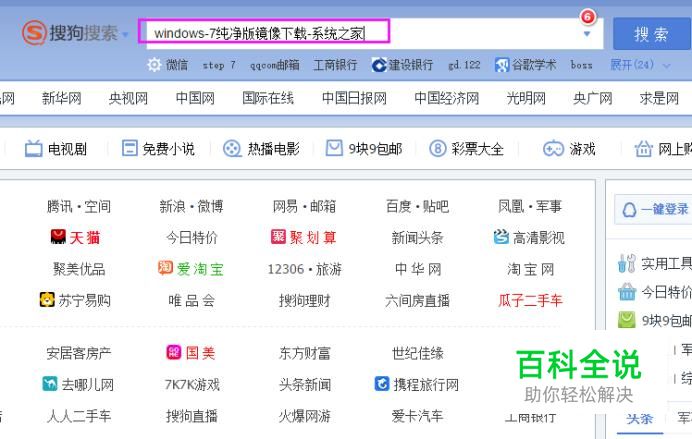 我们在浏览器中输入“windows-7纯净版镜像下载-系统之家”,如图。