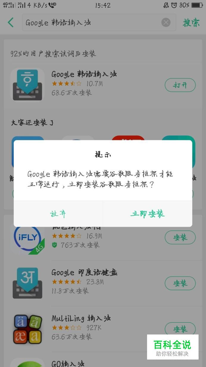 首先我们需要在OPPO应用商店中,下载一个”谷歌韩语输入法“