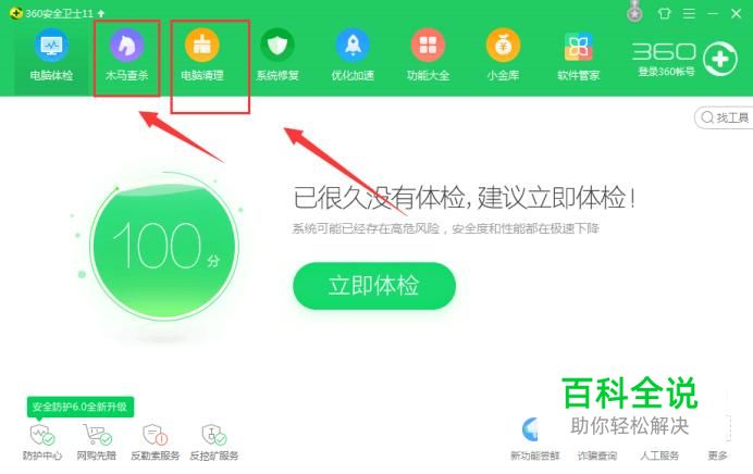 全面清理 使用360安全卫士对电脑进行全面清理,以及对电脑进行全面杀毒操作,如下图所示: