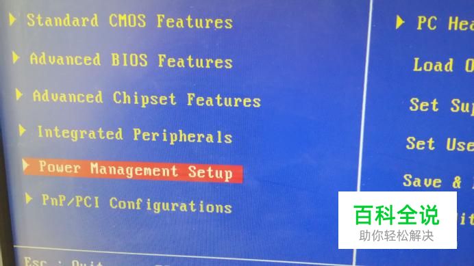 首先开机立刻按DEL键进入主板BIOS(联想戴尔等品牌机是按F2,惠普是按F10),先看这个主板的BIOS,我们选定“power management setup”,回车