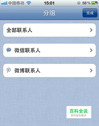 通讯录里增加了微博联系人,通讯录分组中会多出一个“微博联系人”分组。