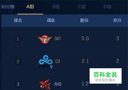 首先我们先列举第一轮结束后A组积分情况 1.SKT 3-0 2.C9 2-1 3.ahq 1-2 4.EDG 0-3