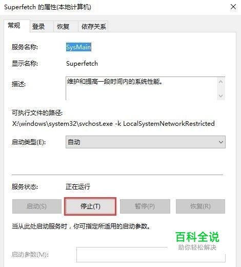 按组合键“win+r”打开运行窗口,输入services.msc,然后在服务列表中找到superfetch服务,将其停止,如图所示: