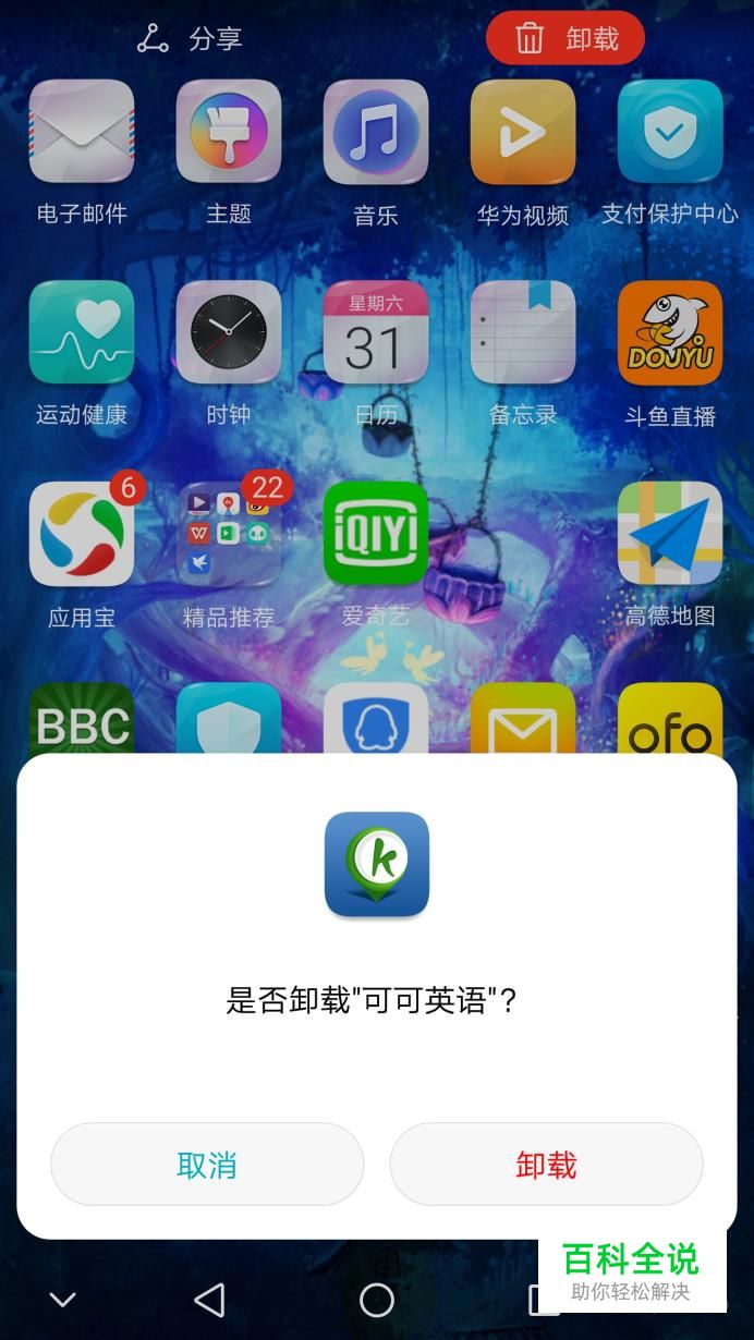 找到想要换版本的软件,然后删除它。如:可可英语