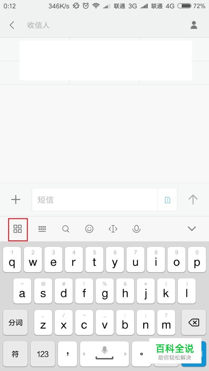 首先,打开手机上的文字编辑应用即可调用输入法键盘,点击键盘上的“菜单”按钮。