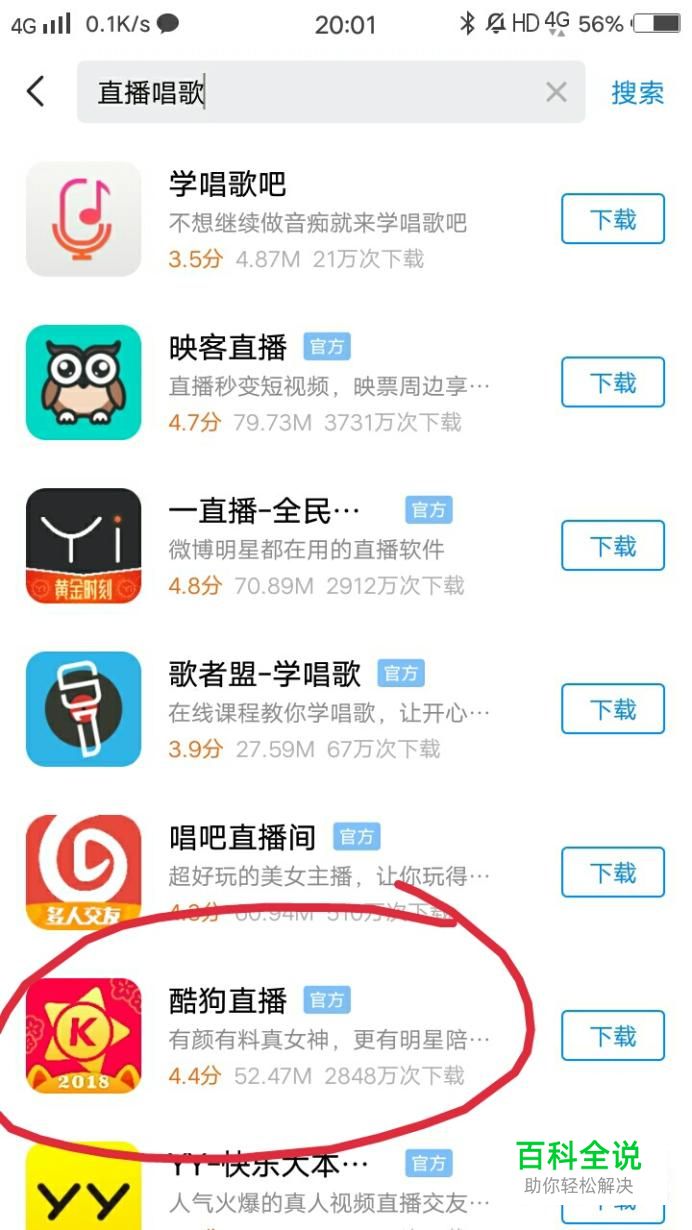 酷狗直播 酷狗直播是很多人都在使用的一个软件,人们可以通过这个软件来直播唱歌,里面也有很多特效,拍摄出来的直播质量比较好。
