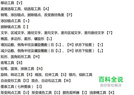 下图是AI中工具选择方面的快捷键,如果一个工具有多个类型的话,同时按shift能够进行选取。