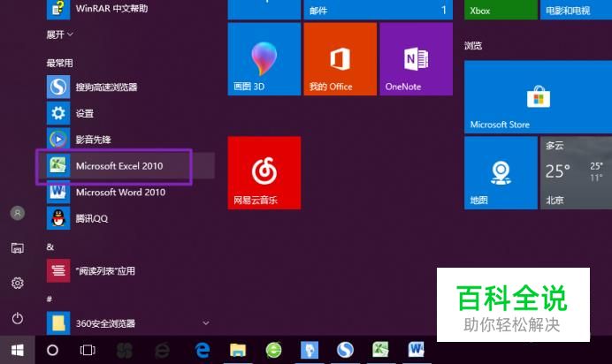 弹出的界面,我们准备将excel2010的快捷方式移动到桌面上;