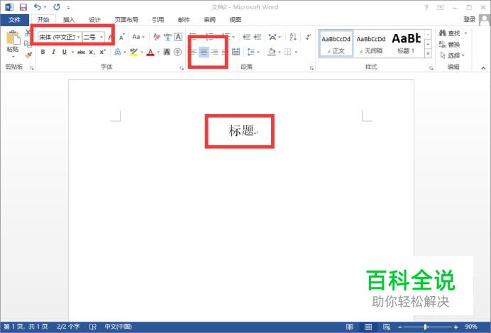 首先,设置标题,格式为宋体二号,居中。