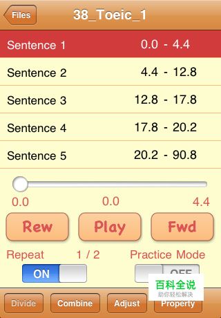 可以分为几个句子的外国语言的音频文件,并听取每个句子反复
