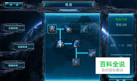 在塔防界面以外游戏还引入了暗黑中科技树的加成概念,虽然很简单但给游戏增添了不少乐趣。 科技树共有三种,每一种建筑一个科技树,而科技点数是靠玩家不断过关来获得经验升级得到的,每升一级就会增加两点科技点数。科技的作用不仅增加建筑的各种 属性,同时也会有其他方面的加成,比如基地水晶石的数量增加,过关后获得星河币奖励的增加。