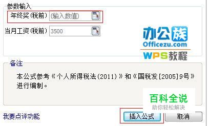 在下方的参数输入栏中填写自己税前得到的年终奖数额,然后点击插入公式。