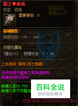 一个顶级霸主麻戒对于战士的意义非凡的,在和对手的PK中,26.75%的概率让对方持续麻痹5秒,对于对手来说将是一个永远超越的存在。