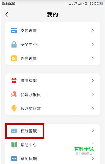 打开了云闪付的个人主页后下拉界面,找到【在线客服】并点击。
