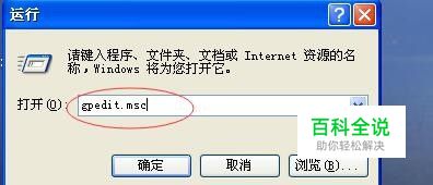 在支行的对话框内输入:gpedit.msc,点击确定