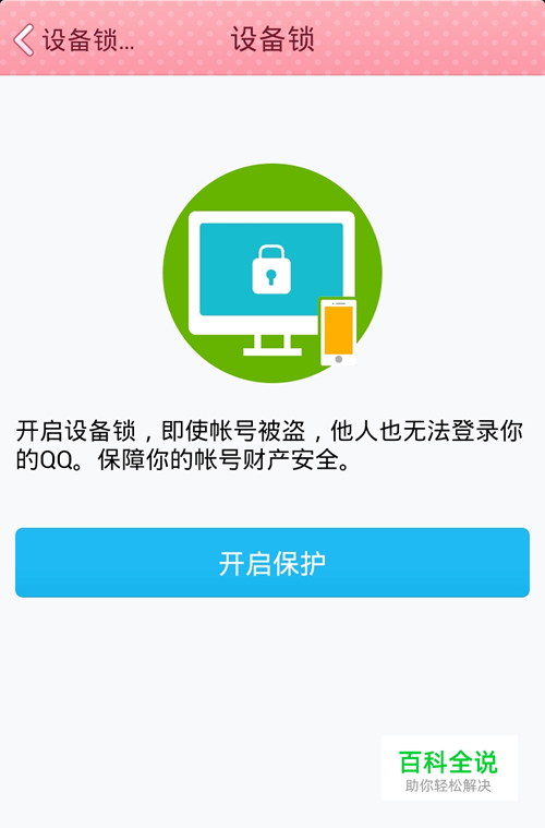 QQ设备锁是需要手动启用的,点击下面的【开启保护】。开启设备锁后,即使帐号被盗,TA人也没法登录你的QQ,保障你的帐号安全。