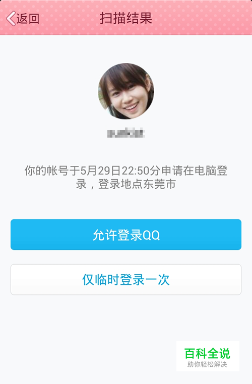 点击【允许登录QQ】,电脑QQ自动完成登录。同时手机QQ上显示已在电脑上登录QQ,点击此选项还可以强制让电脑QQ下线哦。